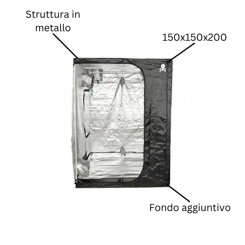 Ukratko, Pirate Box Grow Box dimenzija 150x150x200 cm je visokokvalitetna kutija za uzgoj koja nudi kontrolirano i zaštićeno okruženje za uzgoj sobnih biljaka. Sa svojim čvrstim metalnim okvirom, reflektirajućom srebrnom unutrašnjosti i ekstra debelim materijalom koji je otporan na vodu i vlagu, ova kutija za uzgoj nudi pouzdano i izdržljivo rješenje za zahtjevne uzgajivače. S dodatnim dnom koje štiti od prolijevanja vode, Pirate Box Grow Box također osigurava sigurnost površina na koje se postavlja.