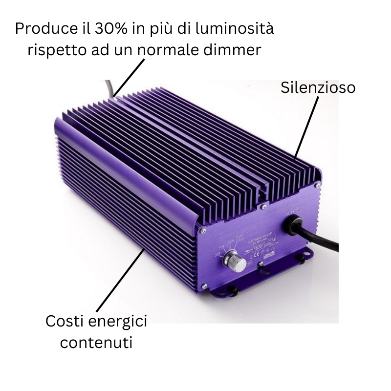 Lumatek 1000W Dimmer je izuzetno svestran i pouzdan elektronički uređaj za kontrolu svjetline. Njegova glavna značajka je da 30% proizvodi veću svjetlinu od standardnog dimmera, nudeći izvrsne rezultate u pogledu kvalitete svjetla.