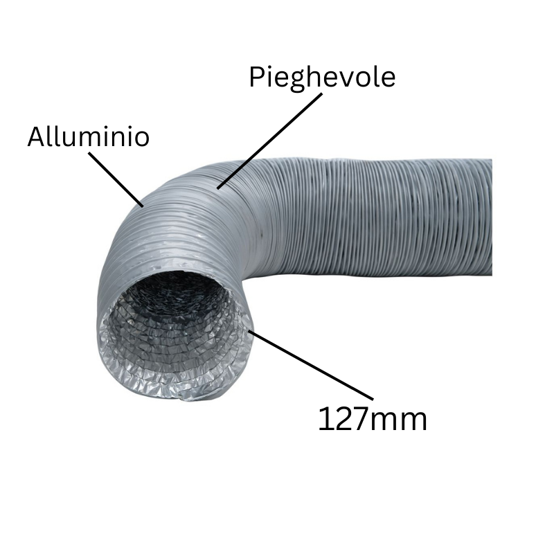 La struttura del tubo è realizzata interamente in alluminio, un materiale molto resistente che garantisce una lunga durata nel tempo. Grazie alla sua flessibilità, il tubo può essere facilmente piegato e adattato alle varie esigenze di installazione. Questa caratteristica lo rende ideale per essere utilizzato in spazi ridotti, dove l’utilizzo di tubi rigidi sarebbe impraticabile.