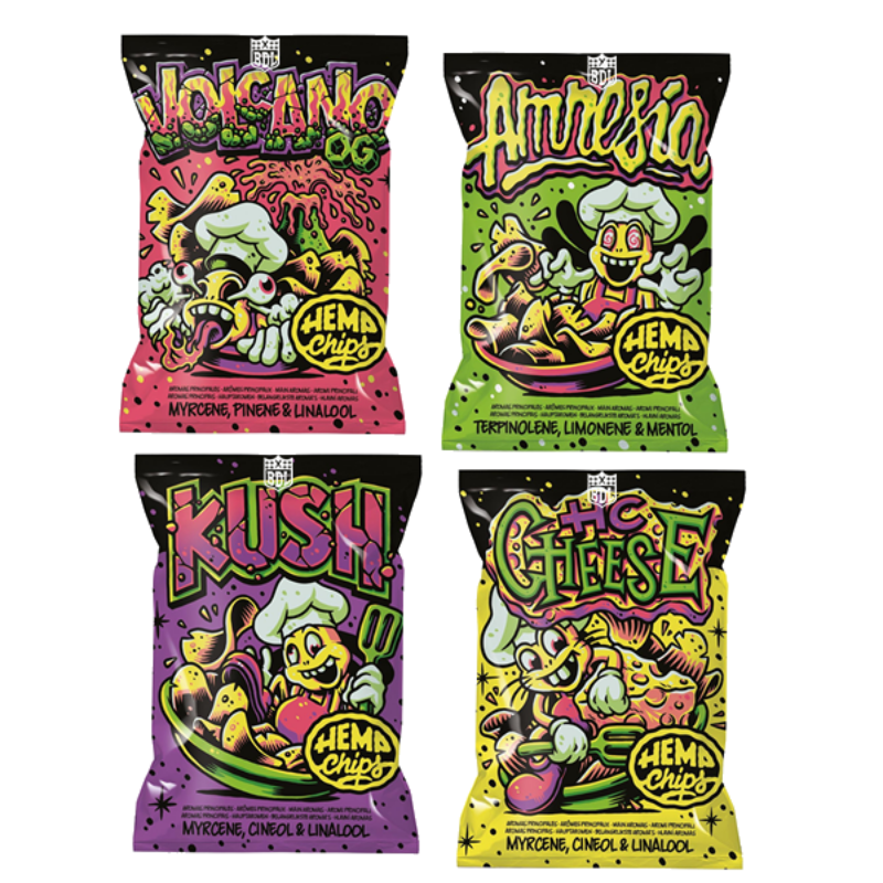 Il marchio Hemp Chips offre quattro diverse varianti di gusto per le proprie patatine alla canapa: Volcano OG, Kush, Amnesia e Cheese. Sono tutte opzioni che suggeriscono l’utilizzo di canapa di alta qualità e il gusto intenso che ne deriva.