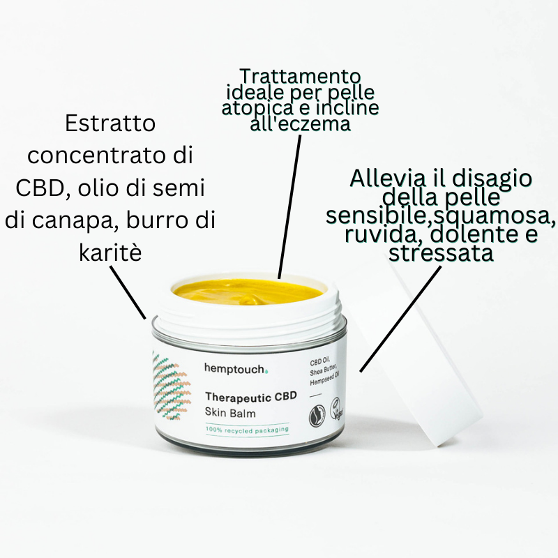 La Therapeutic CBD Balm della marca HempTouch è una soluzione efficace ed equilibrata ai problemi della pelle di chi soffre di dermatite atopica.